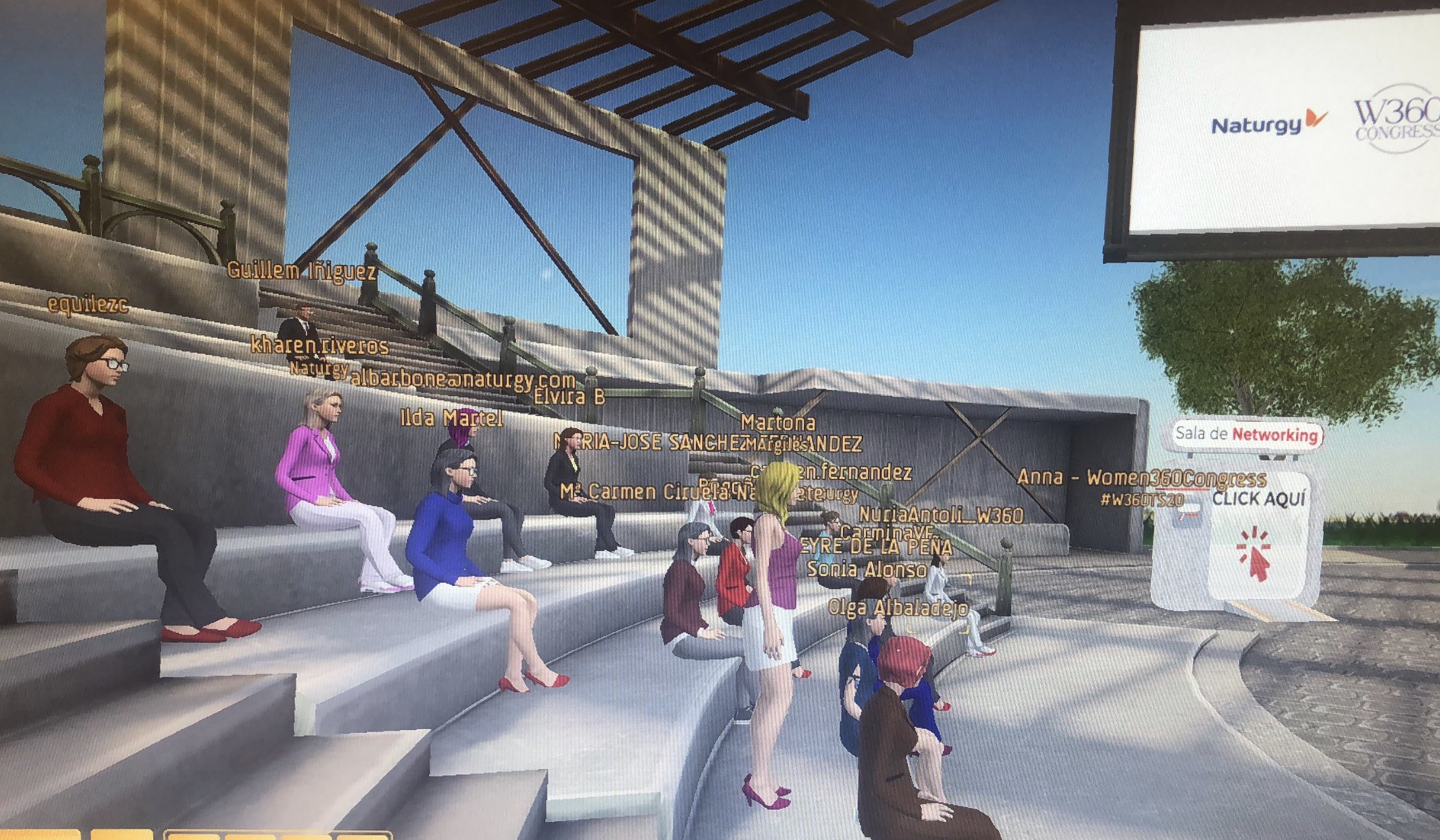 Els més de 150 participants tenien el seu propi avatar personalitzat i a més a més de les ponències hi havia sales de Networking on els participants podien conversar amb els altres assistents.