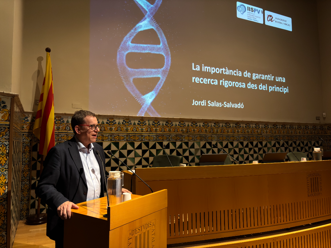 L’acte va iniciar amb la ponència de Jordi Salas, director del CCNIEC, va subratllar la necessitat de garantir una recerca rigorosa des de les fases inicials en l’àmbit de la nutrició. Amb una àmplia trajectòria en estudis clínics i projectes de gran abast com PREDIMED, Salas va posar en relleu el paper de l’evidència científica en la prevenció de malalties com l’obesitat, la diabetis o les patologies cardiovasculars.
